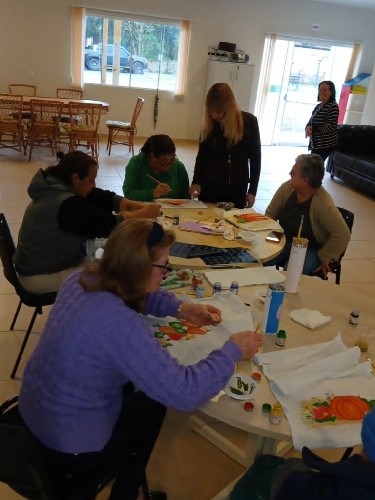 A atividade contou com oficinas de pintura em toalhas, proporcionando momentos de aprendizado, integração e estímulo à criatividade.