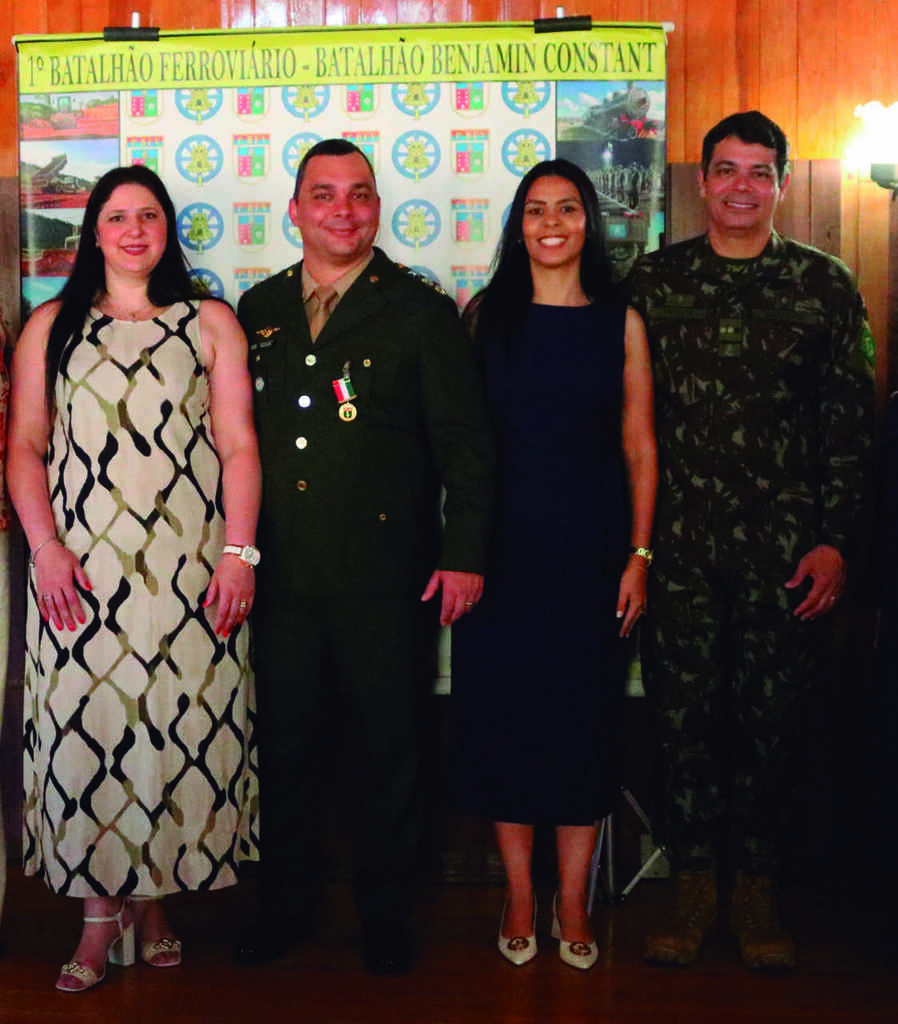 ' ' : ' Da esquerda para a direita: Tenente Cel Hudson e esposa Lelê Faltz Moreira e Tenente Cel Vicente da Silva Costa e esposa Érica Imolas Ferreira'