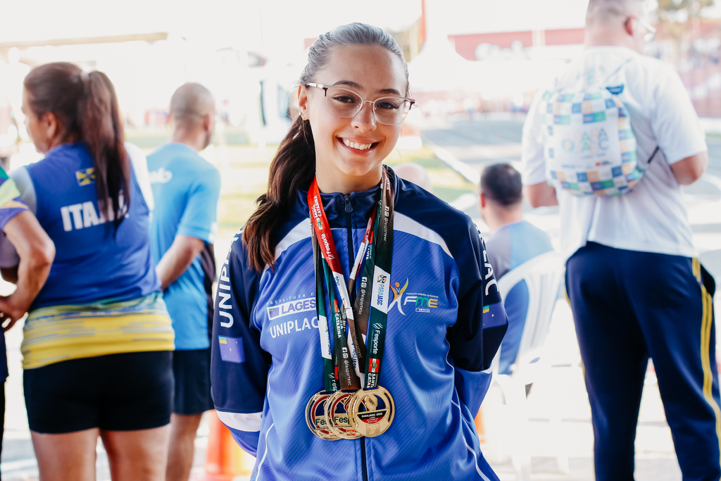 O atletismo dos Jogos Abertos Paradesportivos de Santa Catarina (Parajasc) encerrou na sexta-feira (19 de setembro) em clima de festa para a delegação de Lages. Foram dezenas de medalhas conquistadas em provas de pista e campo, garantindo destaque individual e coletivo, além do troféu de vice-campeão no atletismo feminino da categoria DF, com 158 pontos, desempenho que contou com 10 medalhas de ouro, 3 de prata e 8 de bronze.