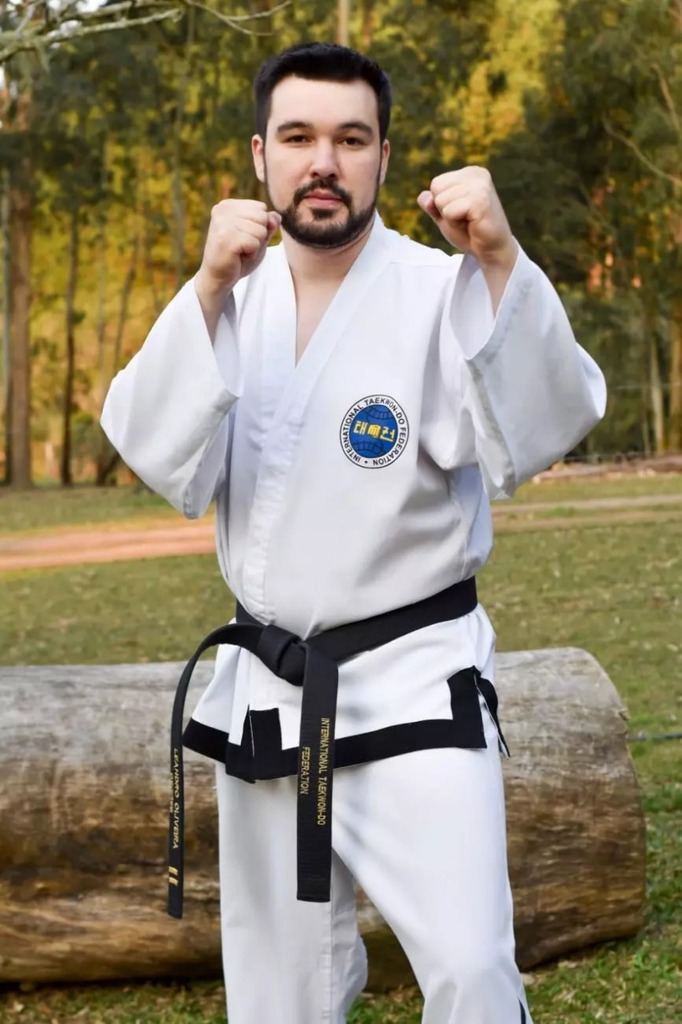 Além de sua carreira como atleta, Leandro é faixa preta 3º dan e professor de Taekwon-do ITF, dedicando-se também a dar aulas para crianças. Sua trajetória competitiva é marcada por conquistas expressivas que atestam sua habilidade e dedicação ao longo dos anos. Seu histórico inclui uma medalha de bronze em Campeonato Mundial, o prestigioso título de Campeão Pan-Americano, além de múltiplos campeonatos Brasileiros e Catarinenses, consolidando seu nome no cenário nacional. Somam-se a essas conquistas vitórias importantes na Copa Mercosul e na Copa 3 Fronteiras. Foi essa base de excelência e experiência em competições de alto nível que preparou o atleta para a transição desafiadora para o mundo profissional do Kombat Taekwondo.
