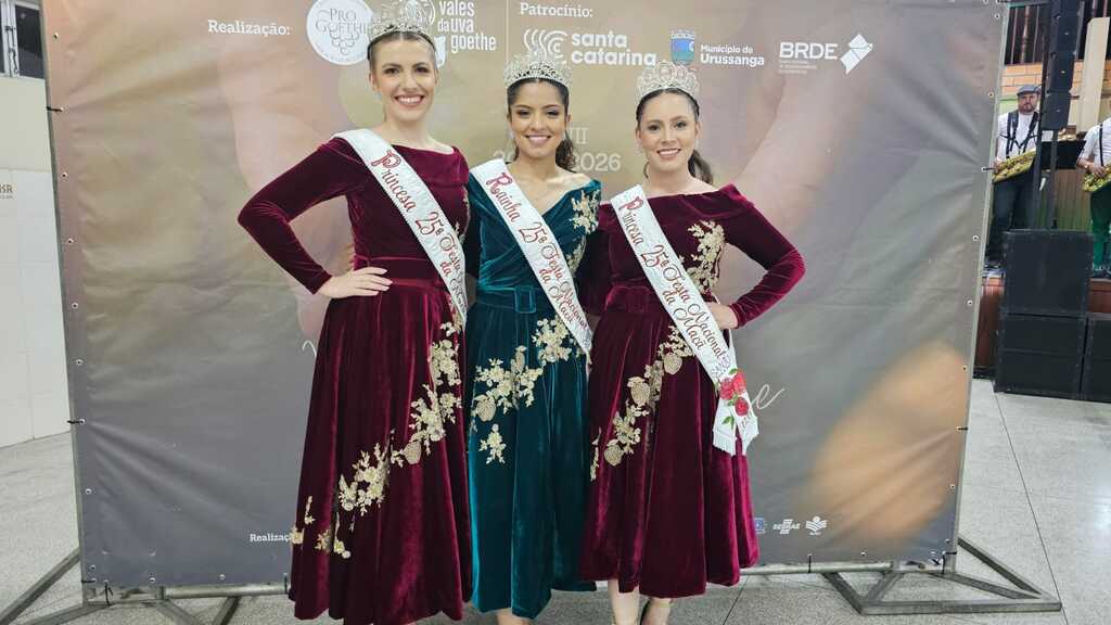 Soberanas da 25ª Festa Nacional da Maçã participam da Vindima Goethe em Urussanga