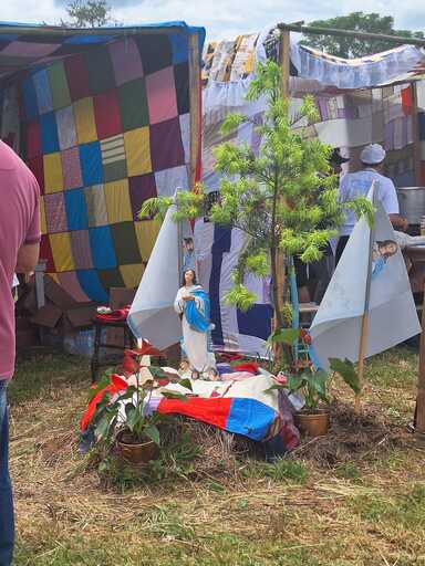 A manhã teve como ponto central a Santa Missa presidida por Dom Guilherme. Em sua homilia, o bispo destacou a importância de recordar os que lançaram as bases da fé na região e de cultivar a partilha como estilo de vida cristã. E ressaltou: “Nós somos uma Diocese, uma Igreja das Tendas. A maior Catedral, não é feita de pedras, essas da terra; É feita como diz São Paulo, de pedras vivas. A nossa maior e mais bela Catedral está aqui, no pátio, em torno das tendas”.