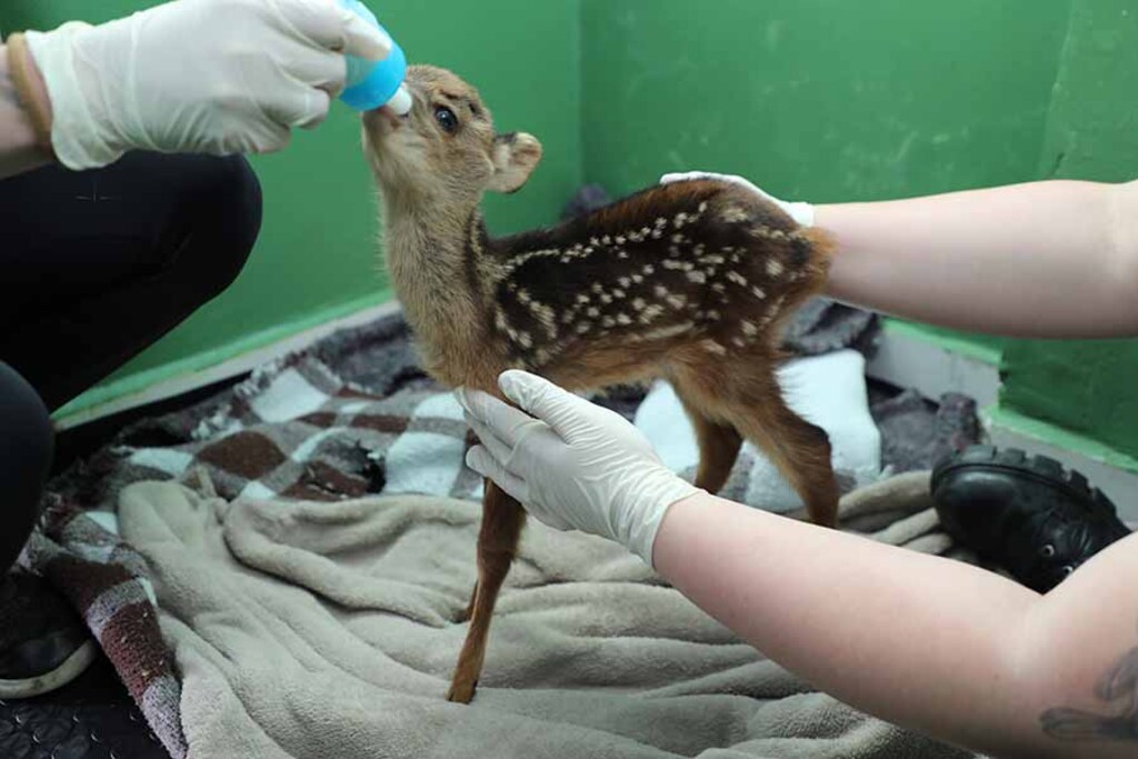 Com cerca de um mês de vida, o pequeno cervo foi encaminhado ao Hospital de Clínica Veterinária Lauro Ribas Zimmer (HCV) do Centro de Ciências Agroveterinárias (CAV) da Universidade do Estado de Santa Catarina (Udesc), onde passou a receber cuidados especializados. O filhote está clinicamente bem, aos cuidados de uma equipe que segue um rígido protocolo de manejo de cervídeos. O animal é alimentado com leite de cabra e monitorado por uma equipe formada por professores, técnicos e estudantes da graduação em Medicina Veterinária. “Ele ainda é muito jovem e precisa de cuidados específicos. O processo agora envolve alimentação adequada, exames clínicos e avaliação do seu comportamento”, explica o professor e médico veterinário Aury Nunes, responsável pelo atendimento. A espécie exata ainda é incerta - pode ser um cervo-campeiro ou um veado-catingueiro -, o que será confirmado por exame genético, já que filhotes de cervídeos têm morfologias (características físicas) muito semelhantes.