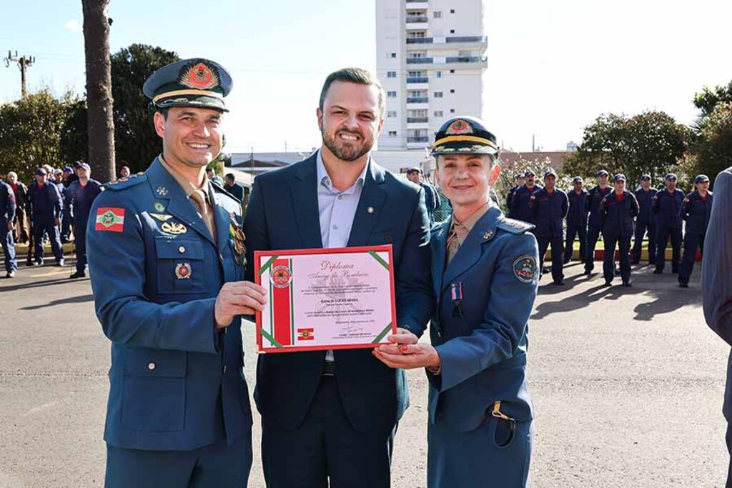 O deputado estadual Lucas Neves (Podemos) foi homenageado nesta quinta-feira (25) com o título de Amigo do Bombeiro durante o evento em comemoração aos 60 anos do 5º Batalhão de Bombeiros Militar, em Lages. A honraria reconhece sua dedicação, apoio e contribuição à corporação.