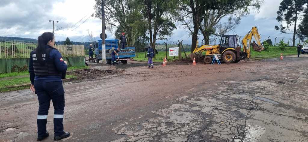 Uma obra da empresa Itajuí, terceirizada da Semasa, com o objetivo de melhorar o abastecimento de água no Acesso Norte, na esquina das Ruas Rua João José Godinho com a José Luiz Botini, acesso ao Bairro Vila Camboni, acabou gerando transtornos, na manhã desta segunda-feira (22).