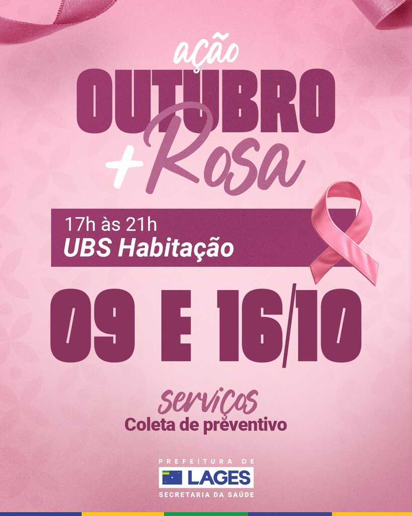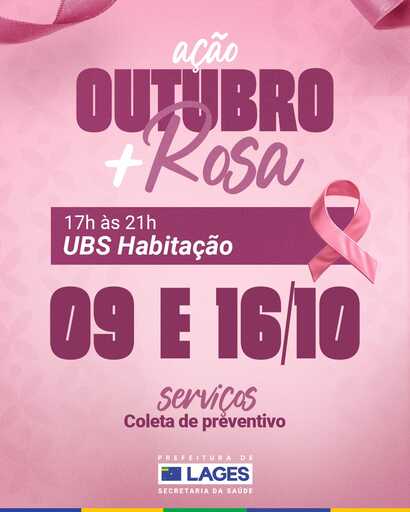 A Prefeitura de Lages preparou uma programação especial para o Outubro Rosa — mês dedicado à conscientização e à prevenção do câncer de mama e do colo do útero. Entre as ações, destaque para os atendimentos em horário estendido na Unidade Básica de Saúde (UBS) do bairro Habitação, que serão realizados nos dias 9 e 16 de outubro, das 17h às 21h.