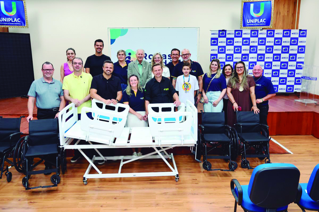Foi realizada nesta segunda-feira, 27 de janeiro, na Uniplac, a entrega oficial dos equipamentos do projeto Rodas Solidárias, uma iniciativa desenvolvida pela Universidade do Planalto Catarinense (Uniplac) em parceria com o Rotary Club de Lages Alvorada. O projeto tem como objetivo ampliar o acesso da população a equipamentos de apoio à saúde e à mobilidade, por meio do uso compartilhado e solidário desses materiais. O Rodas Solidárias funciona através de uma plataforma digital: http://rodassolidarias.com.br, onde os usuários podem solicitar gratuitamente o equipamento de que necessitam, utilizá-lo pelo tempo necessário e devolvê-lo após o uso, garantindo a rotatividade e beneficiando um maior número de pessoas. A aquisição dos equipamentos foi viabilizada por meio de uma emenda parlamentar do deputado estadual Lucas Neves, no valor de R$ 100 mil, com apoio da Prefeitura de Lages, responsável pela compra dos materiais. Ao todo, foram adquiridas 20 camas hospitalares, 10 muletas, 58 cadeiras de rodas para banho e 58 cadeiras de rodas para transporte de pacientes.