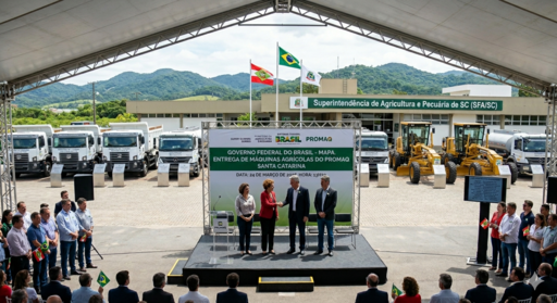 Os equipamentos - caminhões basculantes, caminhões-pipa e motoniveladora - vão reforçar a infraestrutura rural, melhorar estradas e apoiar o escoamento da produção agrícola. A ação faz parte do PROMAQ e dá continuidade aos investimentos do Governo Federal no setor e para o estado de Santa Catarina.