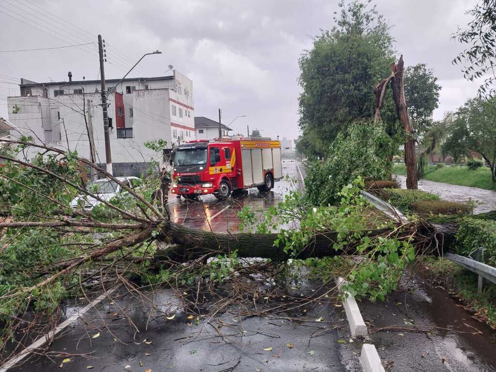 Vendaval derruba árvores e mobiliza Bombeiros em vários pontos de Lages
