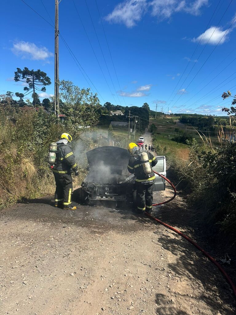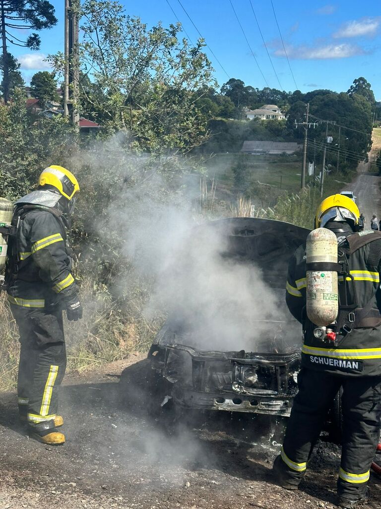 Um veículo foi completamente tomado pelas chamas na manhã deste sábado (18), por volta das 11h35, na Rua Joaquim Faria Neto, no bairro Jardim das Camélias, em Lages. A ocorrência foi atendida pelo 5º Batalhão de Bombeiros Militar, por meio da viatura ABTR-130.