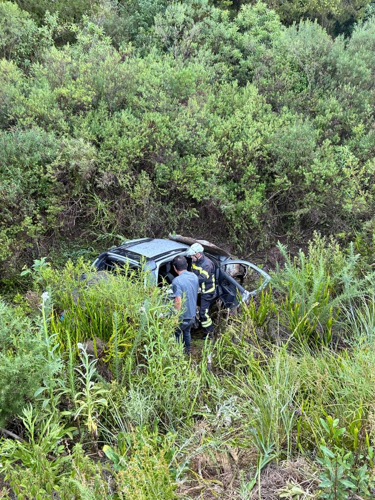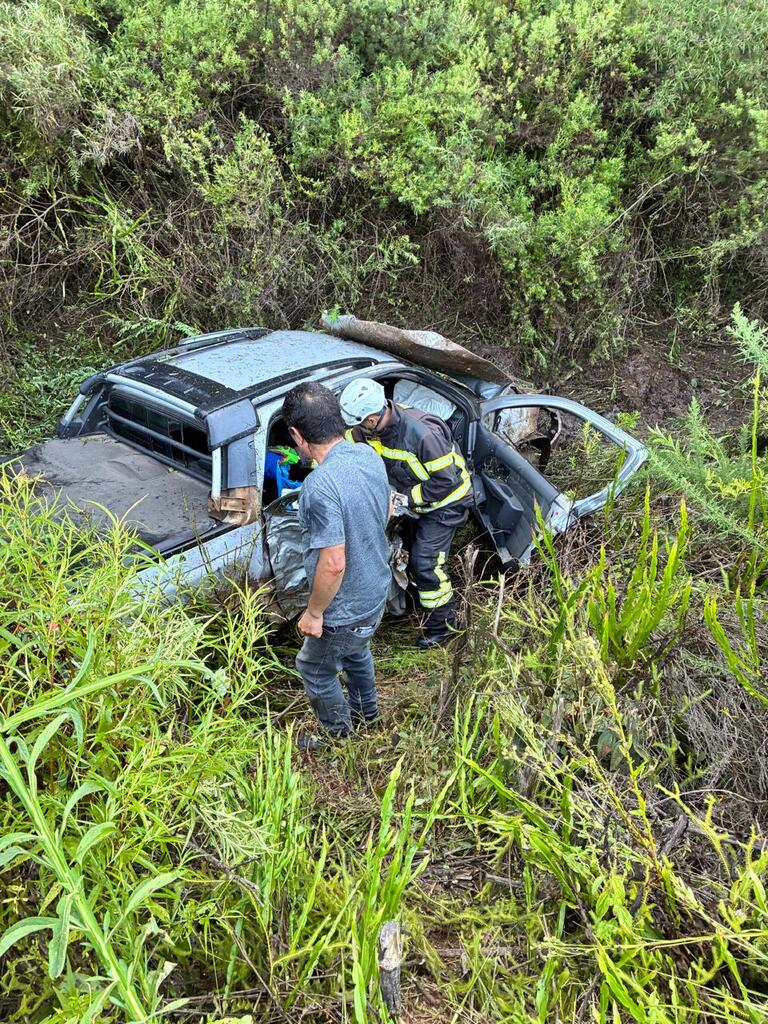 Bombeiros atendem saída de pista seguida de capotamento em São Joaquim