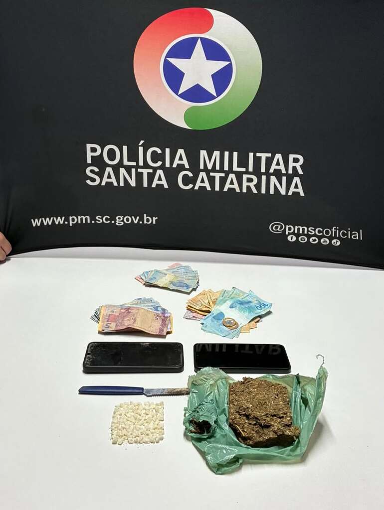 Durante as buscas, os PMs encontraram perto da janela da cozinha um pacote com pedras semelhantes a crack, somando cerca de 11 gramas. Junto ao muro da casa vizinha, onde também houve tentativa de descarte, foi localizado outro pacote com aproximadamente 10 gramas da mesma substância.