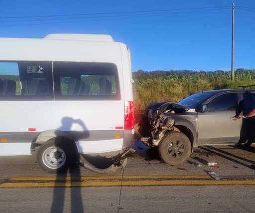 Colisão entre caminhonete e micro-ônibus deixa quatro feridos na SC-114, em Lages