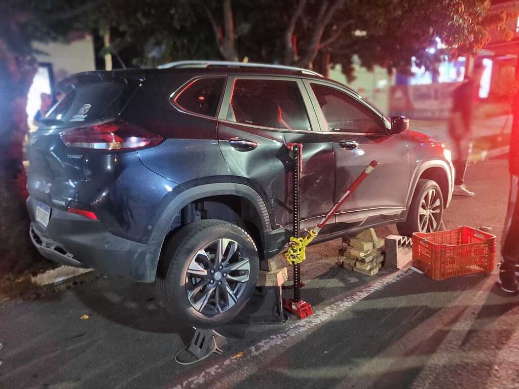 De acordo com os bombeiros, a motocicleta Yamaha, ocupada por um jovem de 18 anos e uma adolescente de 17, colidiu inicialmente com um Chevrolet Celta, conduzido por uma mulher de 42 anos, que não se feriu. Com o impacto, os ocupantes da moto foram arremessados e atingiram a traseira de um Chevrolet Tracker estacionado. A passageira acabou ficando presa sob o veículo, com fratura exposta no tornozelo direito e hemorragia.
