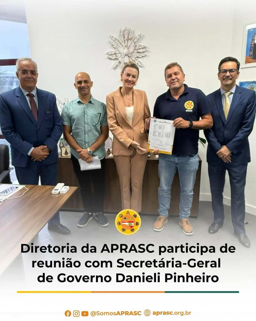 A APRASC agradece à Secretária Danieli Pinheiro Porporatti pela receptividade e pelo espaço de diálogo, e estende o reconhecimento aos Comandos da PMSC e do CBMSC, bem como aos Secretários de Estado que vêm recebendo a entidade e demonstrando disponibilidade para o diálogo. A postura institucional e a abertura ao debate são fundamentais para a construção de soluções que atendam às demandas da categoria.
