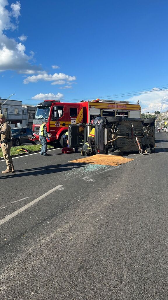 Idoso fica ferido após carro capotar em acidente na Avenida Presidente Vargas, em Lages