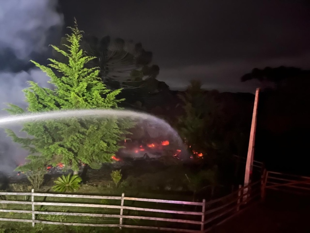 Incêndio destrói residência e galpão na madrugada desta segunda-feira em Capão Alto