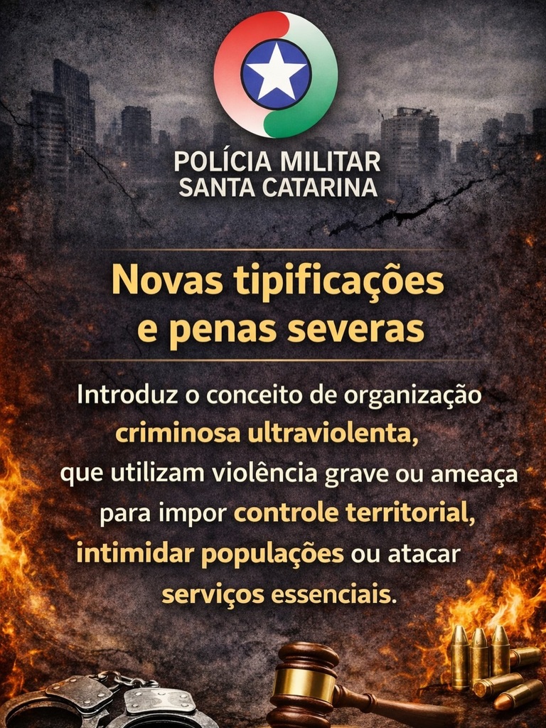 Outro ponto de destaque é a criação de punições específicas para ações praticadas por grupos classificados como ultraviolentos, incluindo organizações paramilitares e milícias. A legislação abrange condutas que envolvam violência ou grave ameaça e que atentem contra a paz pública, a segurança da população e o funcionamento regular das instituições.