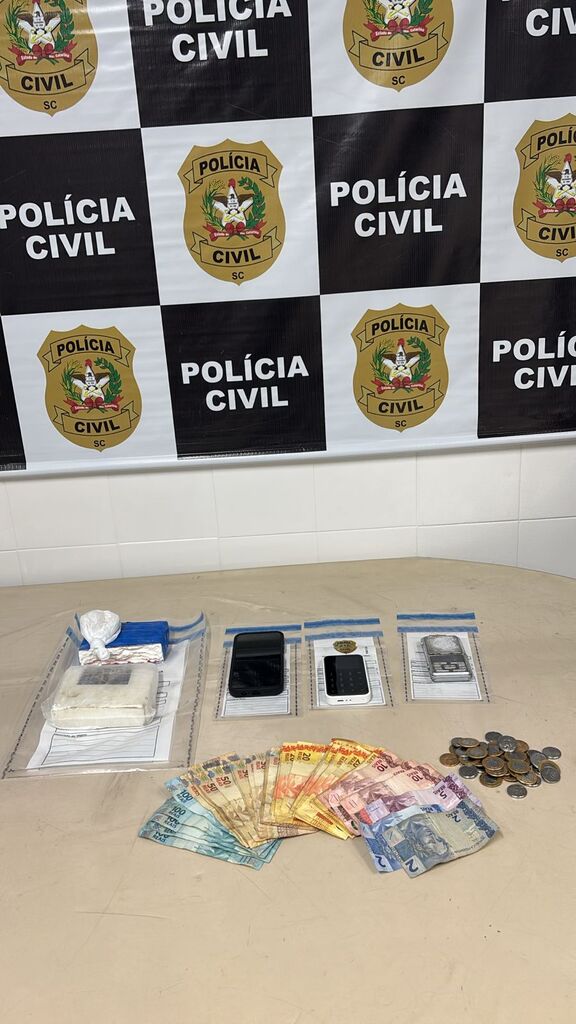 No meio das buscas, a polícia encontrou um monte de coisa errada: erva do capeta, branca, pedra e até mais de um quilo de branca pura, além de balanças de precisão e outros kits usados no corre. Tudo devidamente recolhido pra engrossar o inquérito.