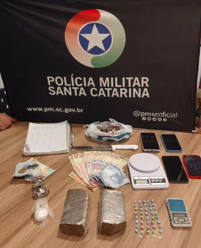 No endereço informado, a equipe localizou cerca de 1 kg de maconha, porções já separadas da substância, aproximadamente 16 gramas de cocaína, 41 comprimidos de ecstasy, duas balanças de precisão, dinheiro em espécie e mais aparelhos celulares.