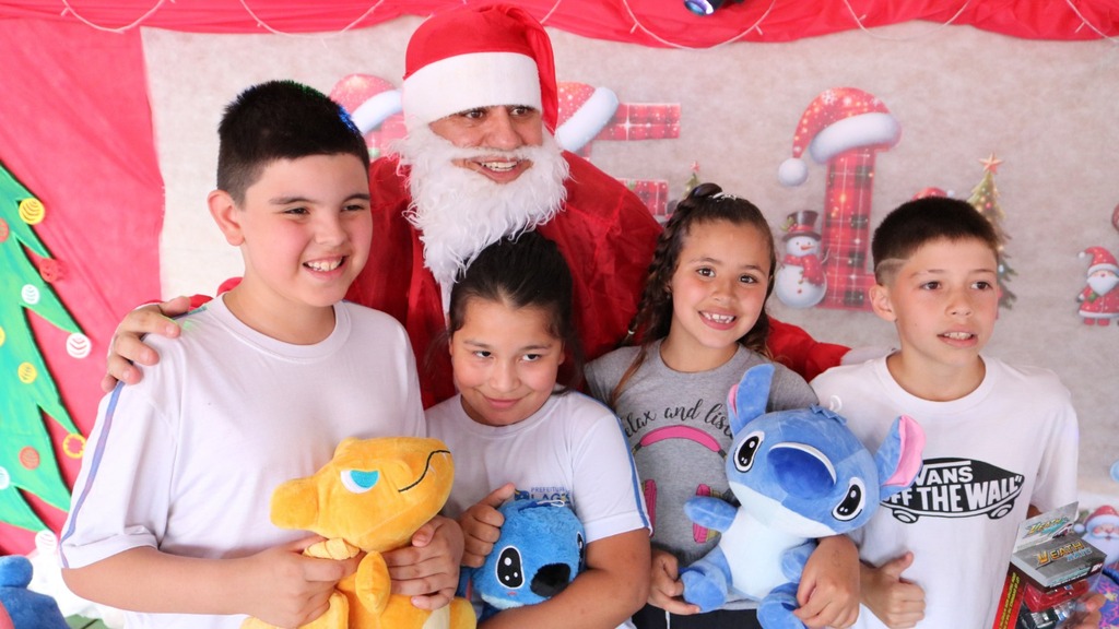 A chegada do Papai Noel, já tradicional na unidade escolar, trouxe ainda mais encanto ao momento, simbolizando o fechamento de um ciclo de aprendizado e cuidado com o meio ambiente. A ação contou também com a colaboração de parceiros que proporcionaram aos participantes alimentação, brinquedos, pastinhas, picolés, pipocas, bolos e refrigerante — tudo pensado para celebrar o Natal e fortalecer os vínculos com a comunidade.