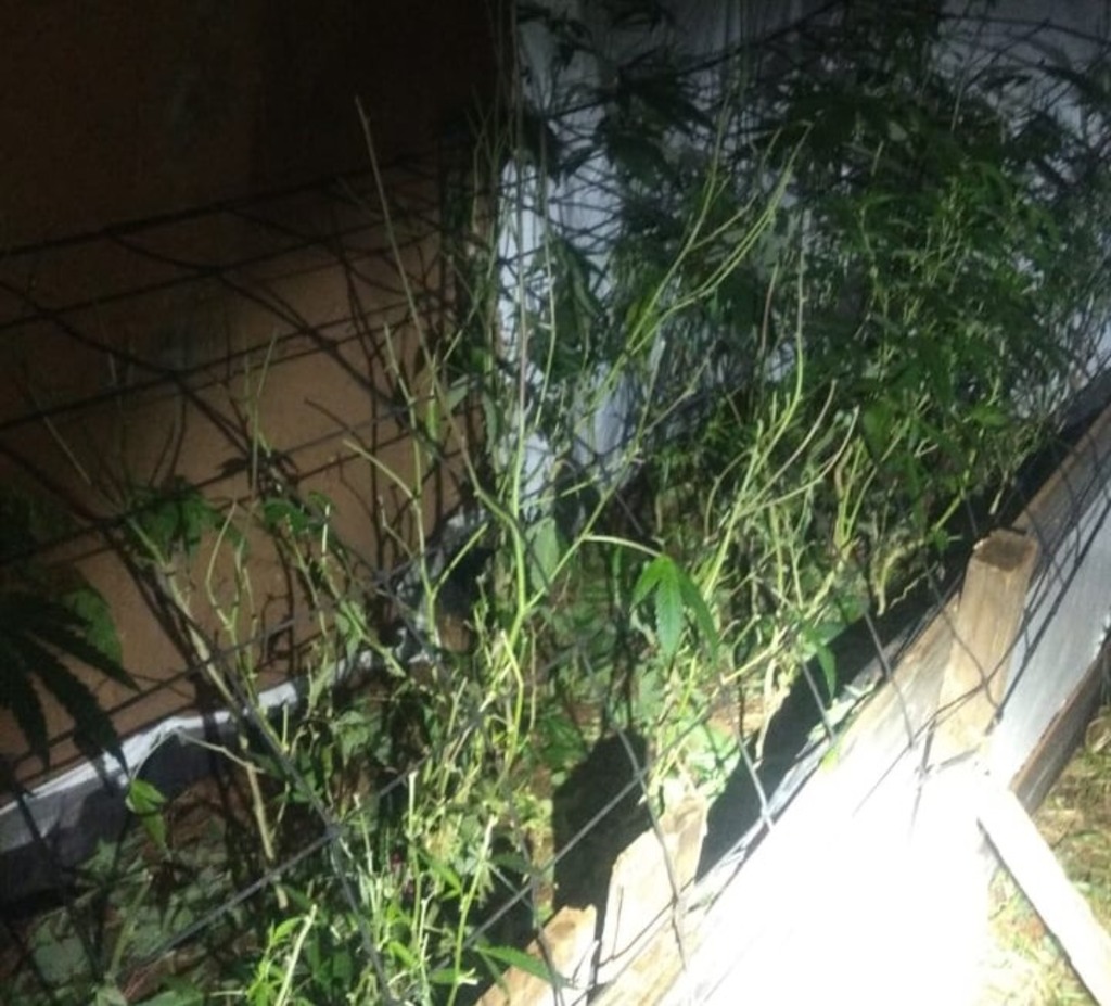 Durante as buscas, foram encontrados 29 pés de maconha em fase de crescimento na área externa do imóvel. Já no interior da residência, os policiais localizaram uma estufa adaptada, equipada com sistema de ventilação e iluminação, onde havia outras 35 mudas menores da droga.