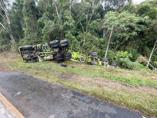 Quatro feridos em acidente com carreta carregada com produto químico em Alfredo Wagner