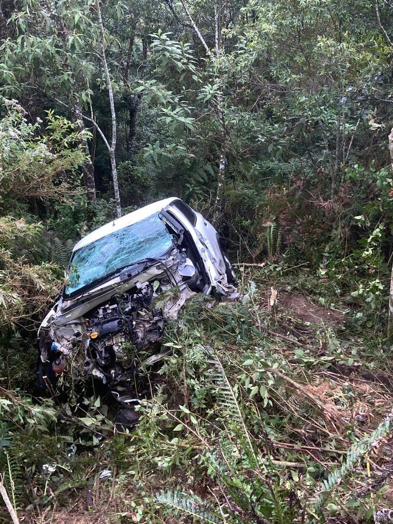 O automóvel caiu em uma ribanceira íngreme, cerca de 5 metros abaixo da via, com danos frontais e airbags acionados. As equipes realizaram a estabilização do veículo e o resgate das vítimas encarceradas.