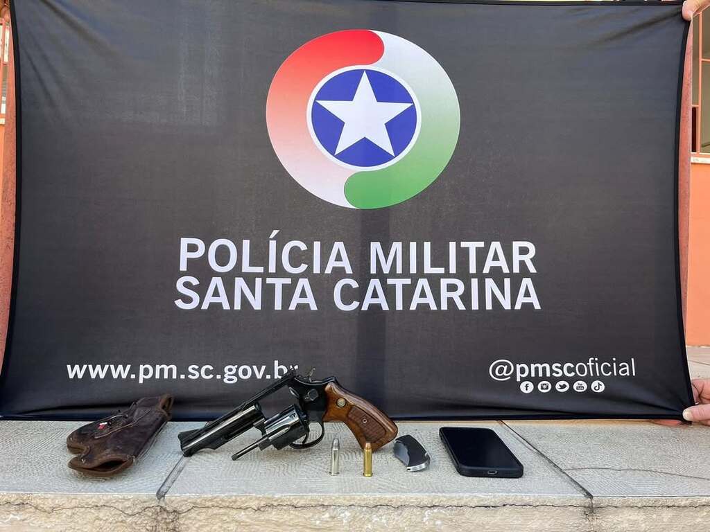 Durante uma operação conjunta, os meganhas lograram êxito em abordar o o possante e em buscas, encontraram no interior do automóvel um tresoitão, municiado com duas balas.