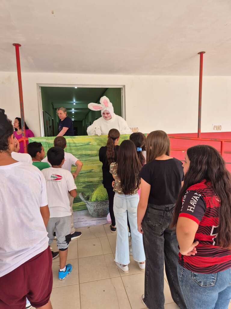 Já no dia 1º de abril, a iniciativa também contemplou as escolas da rede estadual do município, ampliando o alcance da ação e garantindo que ainda mais estudantes pudessem vivenciar o espírito pascal.
